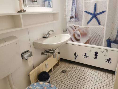 eine gemütliche Kneipe, ein Bäcker, Fisch Imbiss, ein Friseur und kleine Läden.